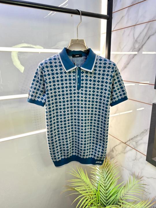 Home T-Shirts Amir i Imported knitted Monogram Blue Super Premium Collar Neck Polo T-shirt F3480-BU