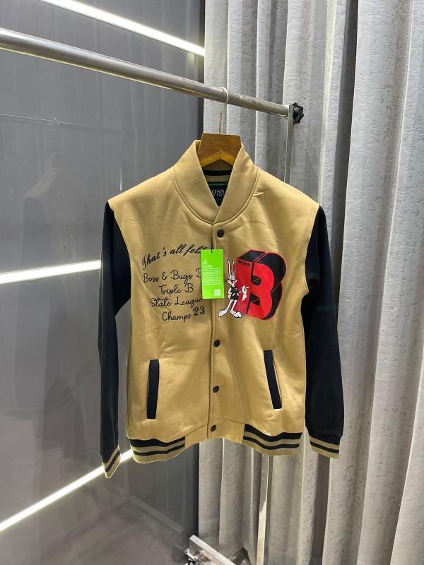Big saleBOSS BROWN PRINTED PREMIUM VARSITY BOMBER JACKET
